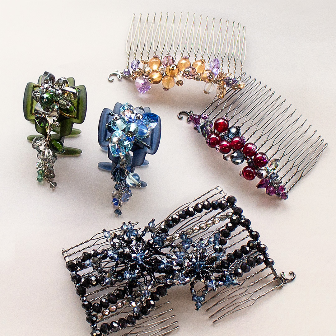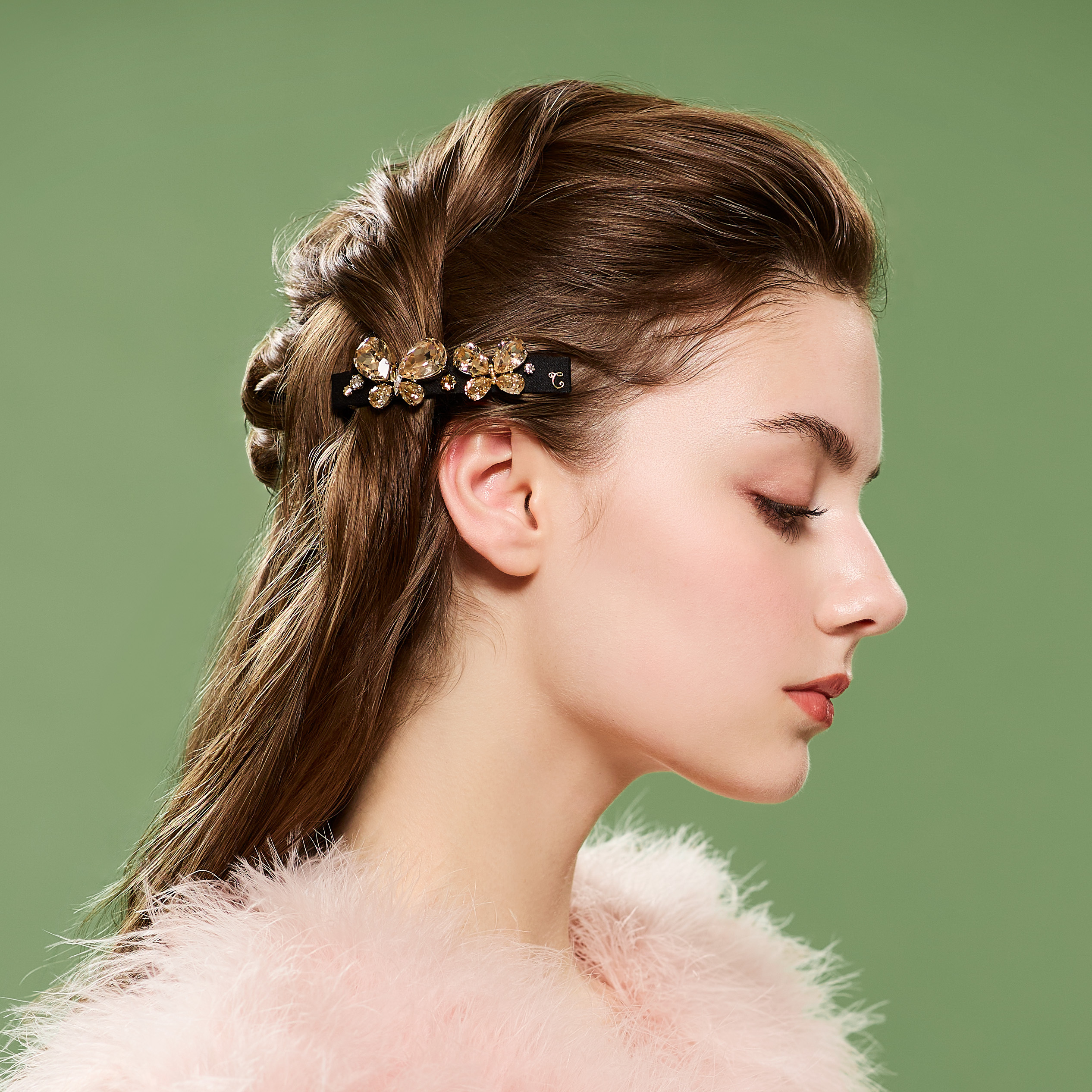 スワロフスキー®・クリスタルでトリミングしたクリッピーズ。繊細なきらめきはヘアアレンジのアクセントにぴったり。オン・オフ問わずオールシーズン活躍します。
